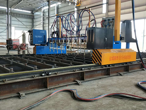 輕型H型鋼的生產(chǎn)工藝過程為: 直條切割——型鋼組立——龍門焊接——翼緣板矯正——小件制作及筋板焊接——〔三維鉆孔——拋丸除銹——噴漆涂裝〕。